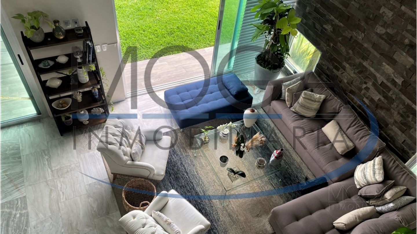 EN PLANTA BAJA SE ENCUENTRA EL GARAGE PARA 3 AUTOS CON CLOSET , LA SALA TIENE TRIPLE ALTURA CON PIEDRA APARENTE EN PARED, ACABADOS DE LUJO EN PISOS, PERSIANAS ELECTRICAS, CON ACCESO AL AREA SOCIAL DE LA ALBERCA Y JARDIN.